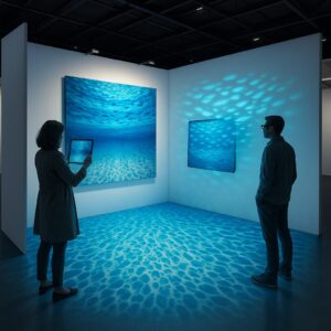 Mr. Veru’s artistic philosophy is centered around exploring the intersection of the soul’s journey, technology, nature, and the human experience. His Ocean of Abundance paintings often depict serene underwater landscapes, inviting viewers to reflect on their connection to the world around them.
