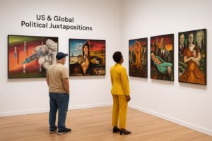 Analyzing the juxtaposition of the USA’s identity, international political figures, power, hubris, leadership, and the quest for universal human destiny
