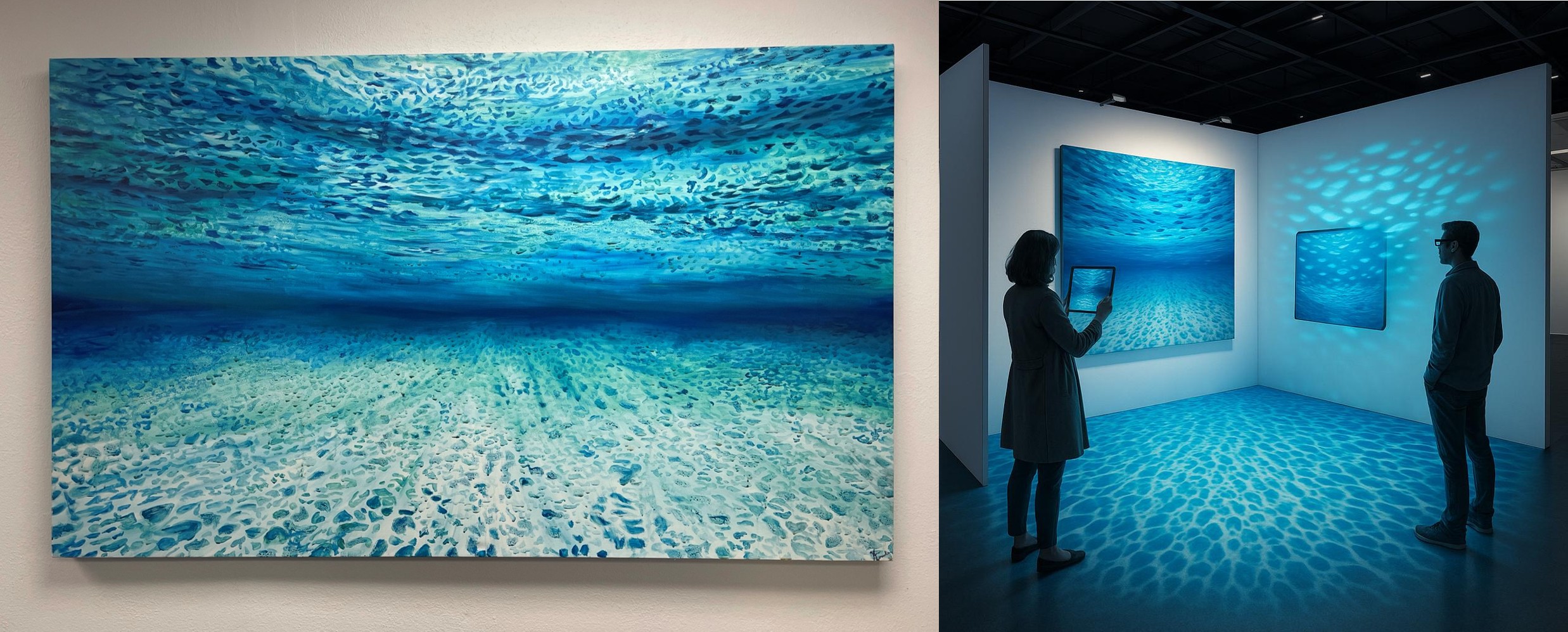 Exploring water as a physics study of light, waves and the oceans floor, incorporating spiritual reflection & augmented reality.