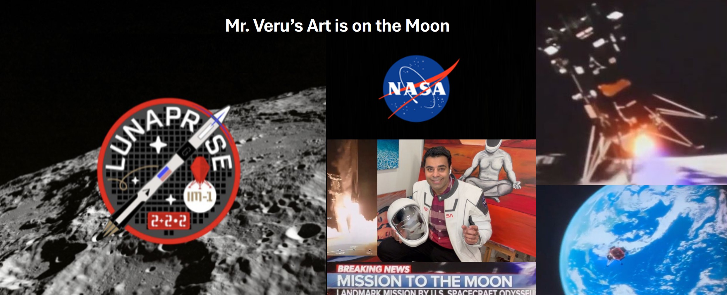 Mr. Veru’s artistic background is impressive, with degrees from Columbia University and the School of Visual Arts. His work has been exhibited in numerous prestigious institutions, including the Smithsonian Museum of Art, Miami Art Basel, the United Nations, Davos, Queens Museum of Art, and many international institutions. On February 22, 2024, Veru’s Art was sent on a Space X rocket to the Moon!