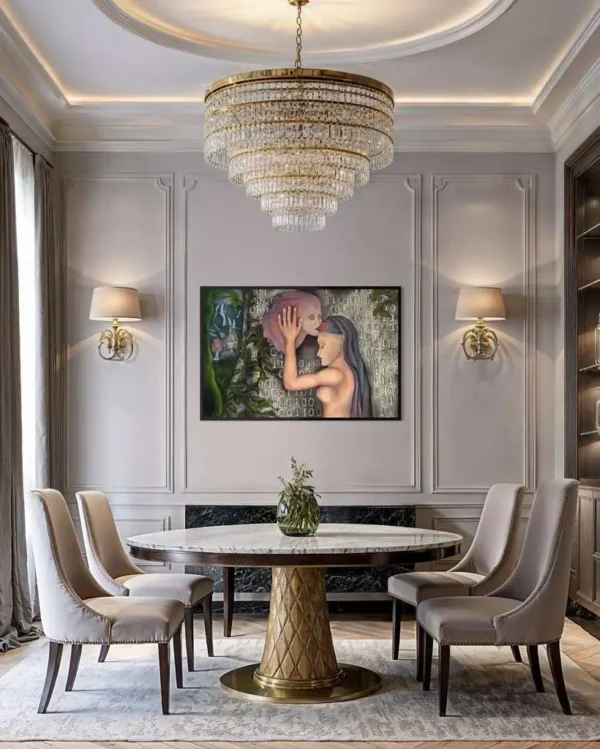 The original oil painting was created by Veru Narula in his studio and captured a fleeting moment. Each print is created at an Atelier in Los Angeles that actually is so pristine that it at times surpasses the amazing recessional effect of the original. Additionally, each print is unique because a textured gel applied by hand at the Atelier to the top waves to give a glistening effect. Ocean of Abundance Prints are superior products, and are wrap printed on the side and comes ready to hang with wire attached at the back. If you prefer a frame, that is available at check out and comes in White, Black and Oak Wood.