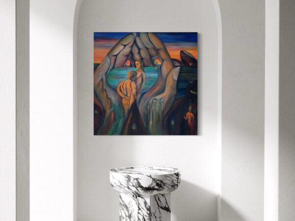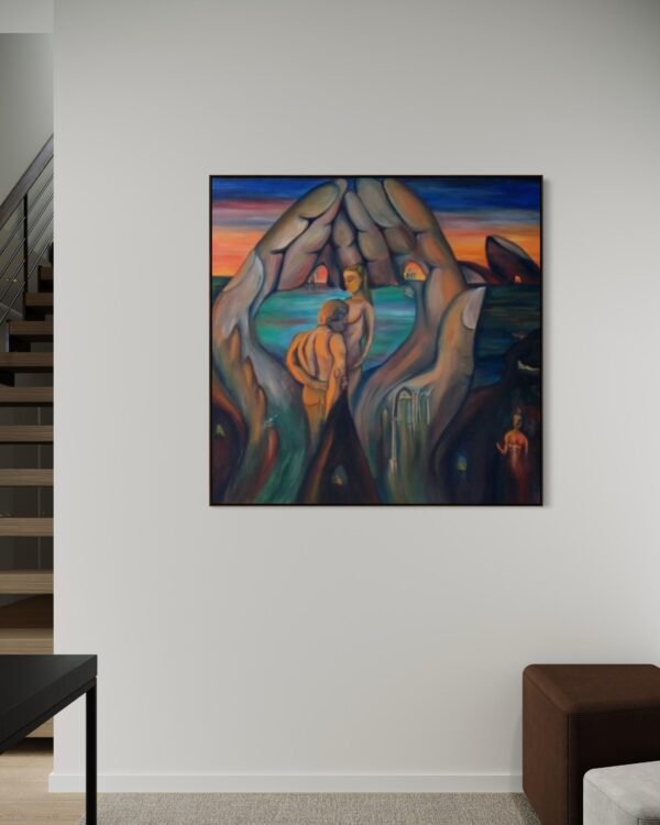 The original oil painting was created by Veru Narula in his studio and captured a fleeting moment. Each print is created at an Atelier in Los Angeles that actually is so pristine that it at times surpasses the amazing recessional effect of the original. Additionally, each print is unique because a textured gel applied by hand at the Atelier to the top waves to give a glistening effect. Ocean of Abundance Prints are superior products, and are wrap printed on the side and comes ready to hang with wire attached at the back. If you prefer a frame, that is available at check out and comes in White, Black and Oak Wood.