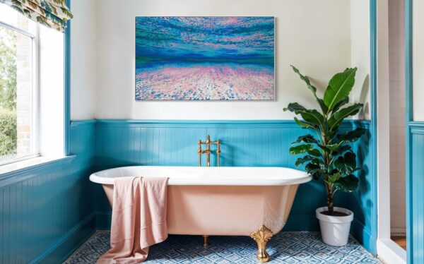 These unique Ocean of Abundance art pieces stand out in any room and transport the viewer to warm underwaters. Award winning – artist Veru Narula studies the effects of light, water and ocean floor to create art that both calms and provokes the spirit.