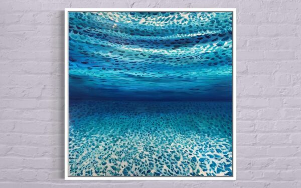These rare, hand-painted ocean art pieces are intended to attract Abundance into your life. A meditative, underwater retreat from the daily grind that studies the effects of light, water and the ocean floor.