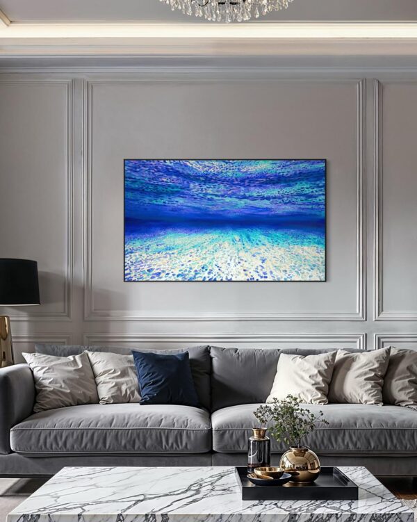 These unique Ocean of Abundance art pieces stand out in any room and transport the viewer to warm underwaters. Award winning – artist Veru Narula studies the effects of light, water and ocean floor to create art that both calms and provokes the spirit.