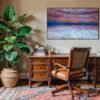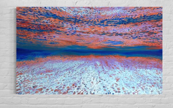 The original oil painting was created by Veru Narula in his studio and captured a fleeting moment. Each print is created at an Atelier in Los Angeles that actually is so pristine that it at times surpasses the amazing recessional effect of the original. Additionally, each print is unique because a textured gel applied by hand at the Atelier to the top waves to give a glistening effect. Ocean of Abundance Prints are superior products, and are wrap printed on the side and comes ready to hang with wire attached at the back. If you prefer a frame, that is available at check out and comes in White, Black and Oak Wood.
