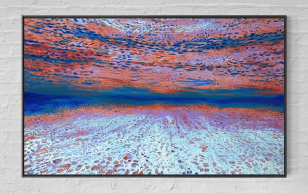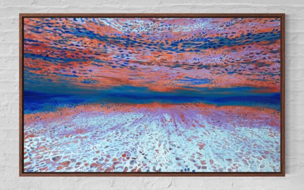 Each Ocean of Abundance Art piece comes ready to hang, and framing options are also available. Additionally, each Ocean Art piece is unique because an artist at the Atelier applies a textured gel by hand to the top waves to give a glistening effect under the light.