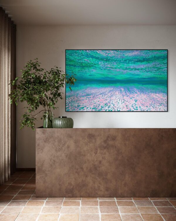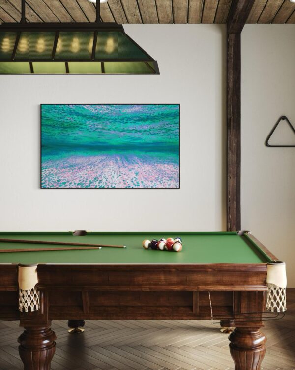 These rare, hand-painted ocean art pieces are intended to attract Abundance into your life. A meditative, underwater retreat from the daily grind that studies the effects of light, water and the ocean floor.