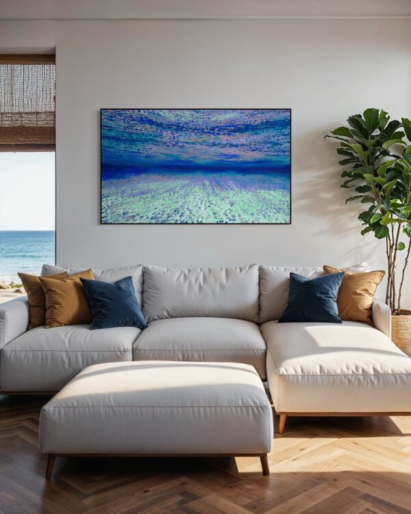 These rare, hand-painted ocean art pieces are intended to attract Abundance into your life. A meditative, underwater retreat from the daily grind that studies the effects of light, water and the ocean floor.