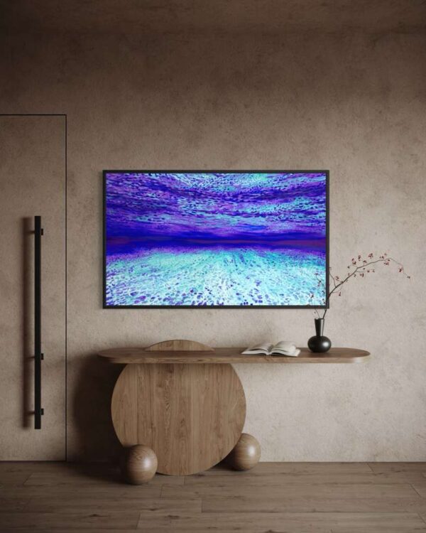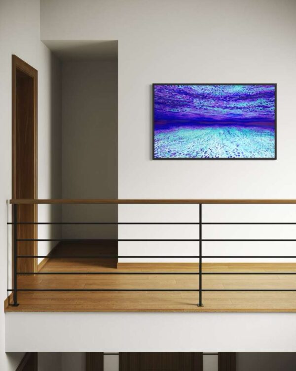 Mr. Veru’s artistic philosophy is centered around exploring the intersection of the soul’s journey, technology, nature, and the human experience. His Ocean of Abundance paintings often depict serene underwater landscapes, inviting viewers to reflect on their connection to the world around them.