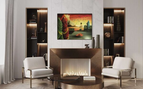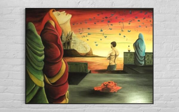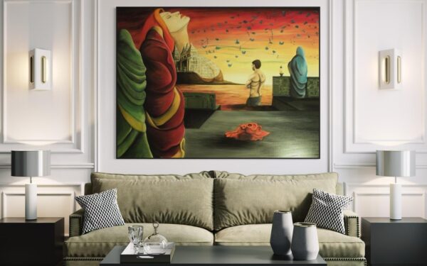 The original oil painting was created by Veru Narula in his studio and captured a fleeting moment. Each print is created at an Atelier in Los Angeles that actually is so pristine that it at times surpasses the amazing recessional effect of the original. Additionally, each print is unique because a textured gel applied by hand at the Atelier to the top waves to give a glistening effect. Ocean of Abundance Prints are superior products, and are wrap printed on the side and comes ready to hang with wire attached at the back. If you prefer a frame, that is available at check out and comes in White, Black and Oak Wood.