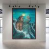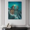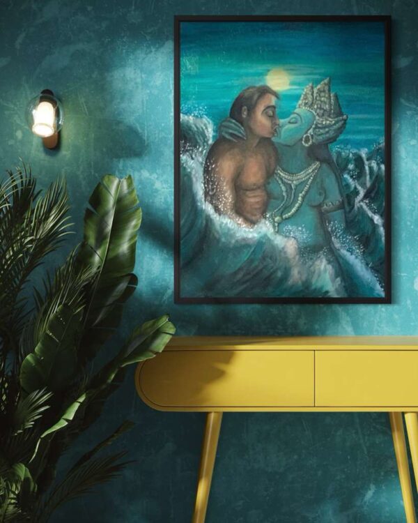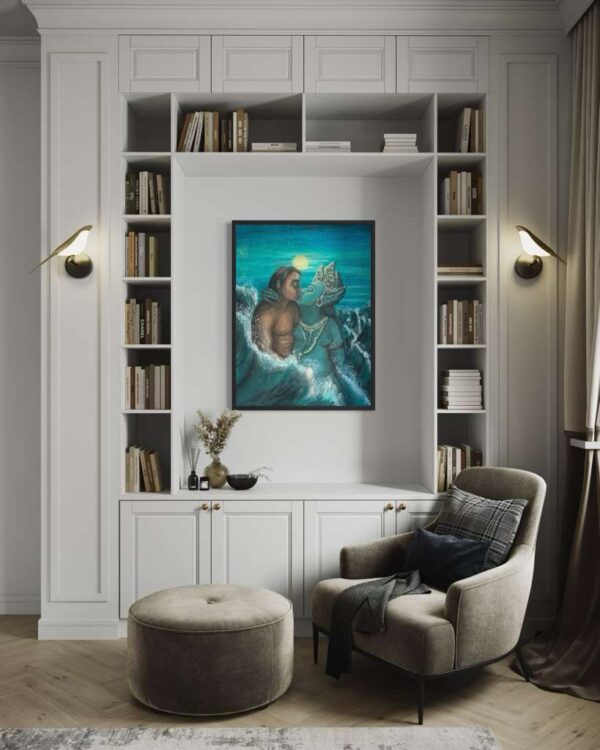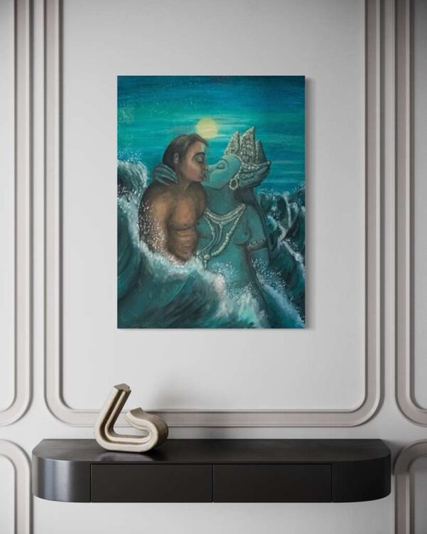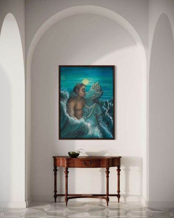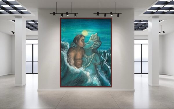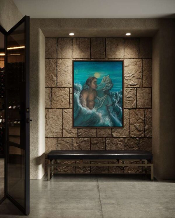The original oil painting was created by Veru Narula in his studio and captured a fleeting moment. Each print is created at an Atelier in Los Angeles that actually is so pristine that it at times surpasses the amazing recessional effect of the original. Additionally, each print is unique because a textured gel applied by hand at the Atelier to the top waves to give a glistening effect. Ocean of Abundance Prints are superior products, and are wrap printed on the side and comes ready to hang with wire attached at the back. If you prefer a frame, that is available at check out and comes in White, Black and Oak Wood.